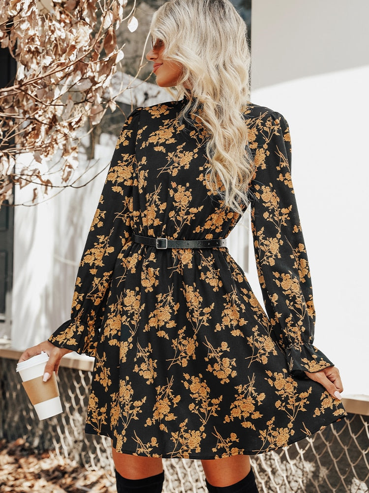 Floral Print Mini Dress For Woman